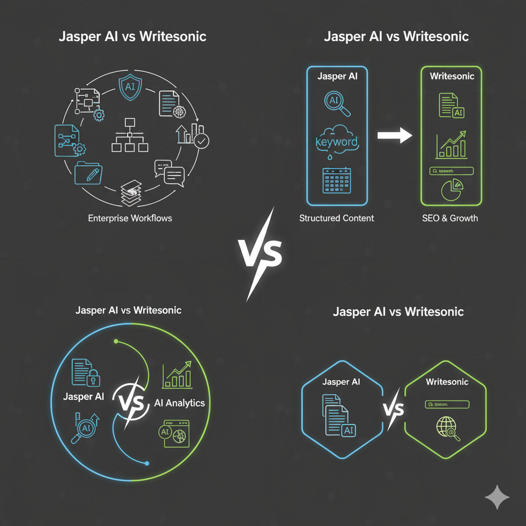 Jasper is better for brand-controlled, long-form SEO content. Writesonic is stronger for SEO execution and audits.